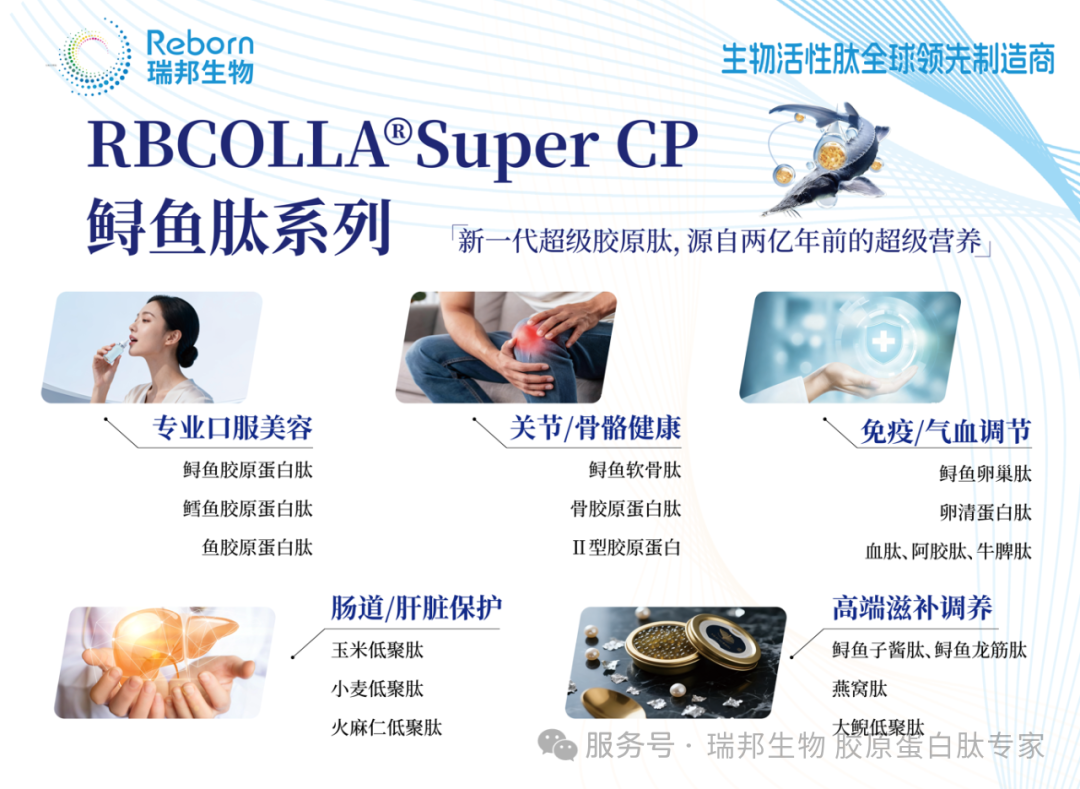 專業(yè)口服美容方案:以鱘魚膠原蛋白肽為核心,搭配鱈魚膠原蛋白肽、魚膠原蛋白肽,精準(zhǔn)直擊抗衰需求;